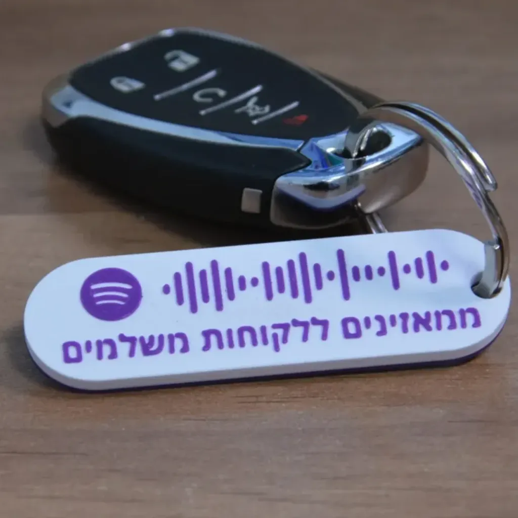 מחזיק המפתחות שכולל קוד Spotify ייחודי המפנה ישירות לפודקאסט שלכם בספוטיפיי. פתרון אלגנטי, שימושי וחדשני להגדלת החשיפה וחיזוק המותג שלכם – בין אם בכנסים, במפגשים עסקיים, מתנה ללקוחות, מאזינים ואפילו כמתנה למרואיינים. ה-PodKeys האישיים שלכם ייכנסו להדפסה אישית לאחר ביצוע ההזמנה 🙂